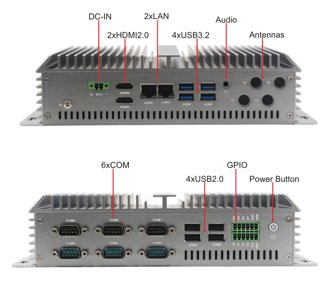 I/O Ports: 4xUSB3.2, 4xUSB2.0. 2xLAN, 6xCOM