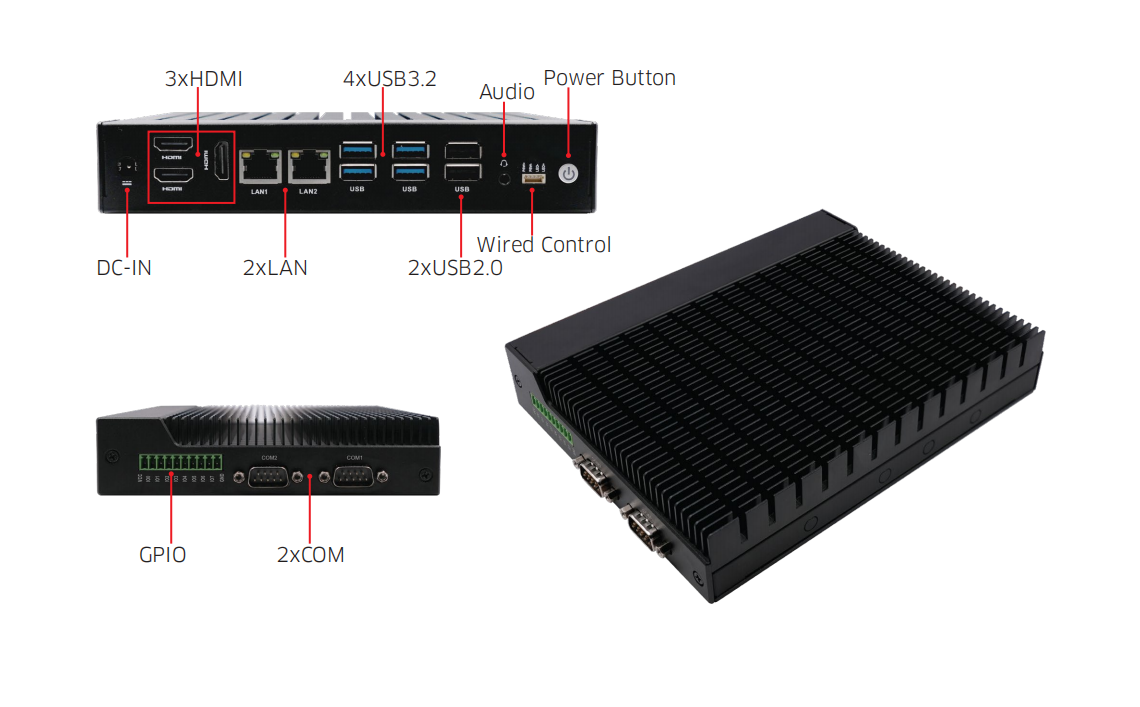 I/O Ports: 2xLAN,2xCOM,4xUSB3.2,2xUSB2.0,3xHDMI