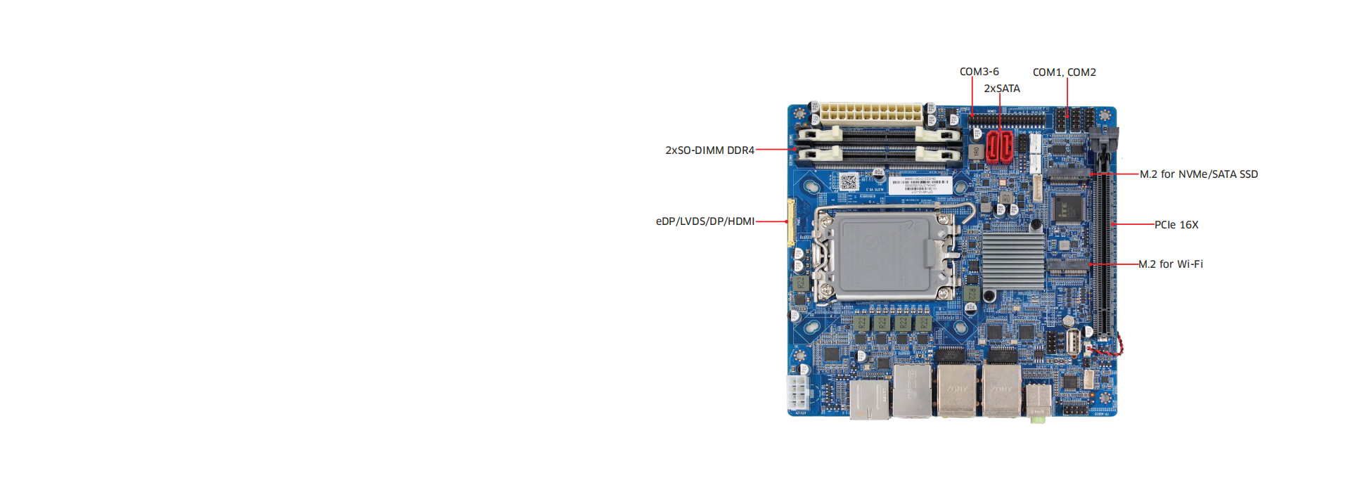 多通道显示:集成显卡并支持HDMI+DP+eDP多通道显示,为您提供丰富的视觉体验,同时支持eDP扩展至LVDs/DP/HDMI,增加应用的灵活性。
