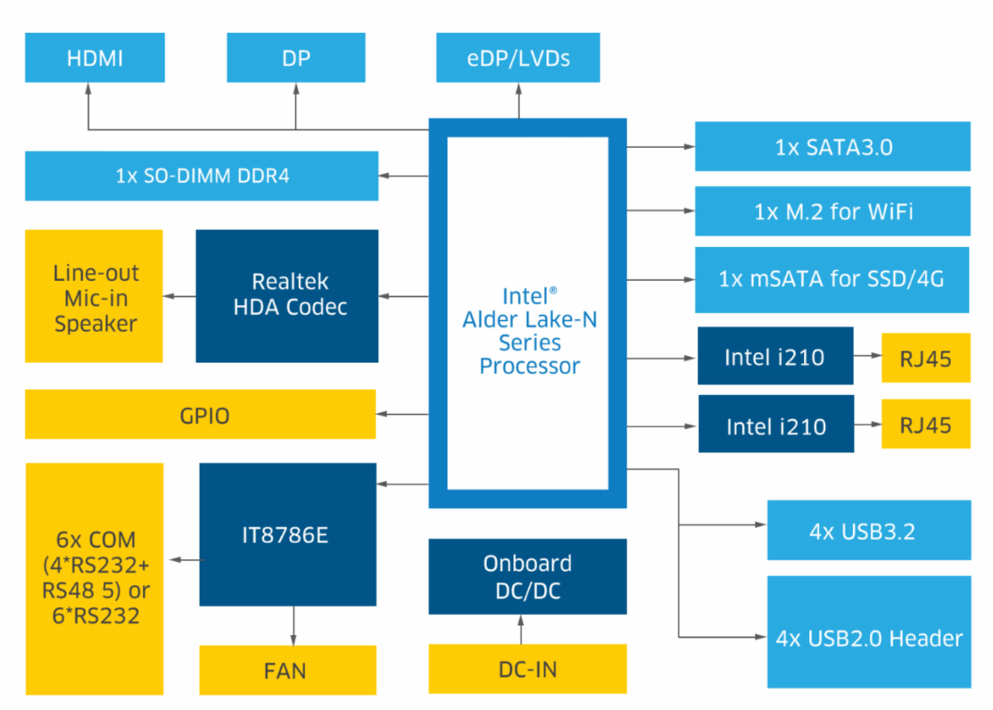 卓越性能与高效处理:搭载Intel Alder Lake-N处理器,ALN-35主板提供出色的计算能力和图形处理能力,满足各种复杂应用的需求。